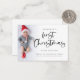 A charming MINI SIZE 3.5" x 2.5" for your festive greetings. PLEASE NOTE if you are in the US, this size is smaller than the minimum US postage requirement so please choose size 3.5" x 5" if you are intending to mail them. Baby First Christmas Custom Photo Card. Lovely to celebrate your baby's first Christmas. A beautiful set script for Christmas and the rest of the text is easy to personalise. Replace the sample photo with your own. A gradient overlay layer is on top of your photo so it fades out as it reaches the centre with the text partially overlaid on top.