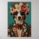 Miniature American Shepherd In Suit Poster, Miniature American Shepherd Portrait, Oil Painting, Animal Head Human Body Poster, Dog Poster