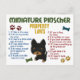Create a laugh, or two, with our funny Miniature Pinscher Property Laws gifts, t-shirts, apparel, and merchandise featuring an adorable 'big-headed' Miniature Pinscher cartoon drawn exclusively for Pooch Lover Stuff by one of our awesome designers. These humourous, and oh so true, dog rules are sure to be a hit with any Miniature Pinscher owner and make an ideal gift for that hard-to-get-for Miniature Pinscher lover on your list!