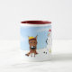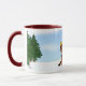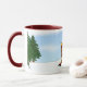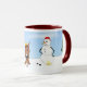 Unique Miniature Pinscher Christmas design. Min Pin with a bit of snow on his nose. Irritated snowman looks on. To ward off the cold the Min Pin has on a scarf and hat that are the colours of his country.