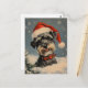 Celebrate the festive season with this adorable Christmas card featuring a miniature schnauzer donning a Santa hat. The charming image captures the spirit of joy and holiday cheer as your furry friend spreads warmth and happiness. The card is a delightful way to convey your season's greetings, blending festive whimsy with the undeniable charm of our four-legged companions. Share the joy of the holidays with a touch of canine festivity that's sure to bring smiles to all who receive it.