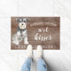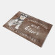 Funny beware of the wet kisser" Miniature Schnauzer Dog door mat set on a rustic faux background. Visit our shop to view a large assortment of dog breads