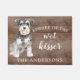 Funny beware of the wet kisser" Miniature Schnauzer Dog door mat set on a rustic faux background. Visit our shop to view a large assortment of dog breads