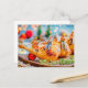 miniature workers with Christmas chicken drumstick Holiday Postcard