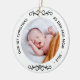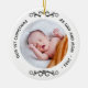 This design features a baby photo and simple ornament frame with vibrant modern text "Our 1st Christmas as dad and mum", and the year. At the back, there is one baby photo and the name. This unique ornament will add an elegant touch to your Xmas home decorations.