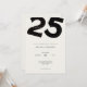 Celebrate your special day with our elegant 25th birthday invitation - minimalistic style. Perfect for your party celebration, this modern black and white invite with bold numbers will impress your guests with its minimal, elegant and simple design. Easy change name, address, date etc, just click <<personalise this design>>.