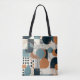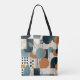 This tote bag features a minimal geometric abstract seamless pattern in a retro and vintage style. The bold lines and shapes create a unique, eye-catching design, perfect for adding a touch of classic elegance to any style.