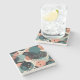 The coasters are gorgeous, a quality feel and heavy weight. They look like a precious archeological find. A rustic stone juxtaposed with a modern floral black and white print. I like the way the print goes slightly imperfect on the cut stone edges giving them a kind-of natural beauty.