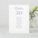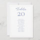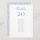 These chic & stylish wedding table number & guest seating cards feature a editable table number and guest seating list. The design includes a contemporary set of fonts in a chic dusty blue against a white background, while the back sports a lovely blue floral pattern.