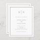 These elegant, modern, budget all-in-one wedding invitations are printed on a paper sheet. They feature a simple white and sage green minimalist text design, with a classic frame at the border. Add your initials or monogram to make them completely your own. The back of the invitation has room to add any guest details, plus a scannable QR code so guests can RSVP online at your wedding website.