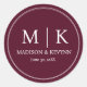 Minimal and Chic | Burgundy Wedding Monogram Classic Round Sticker