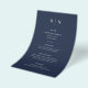These elegant, modern wedding menu cards or rehearsal dinner menu cards feature a simple dark navy blue and white text design that exudes minimalist style. Add your initials or monogram to make them completely your own.