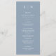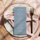 These elegant, modern wedding menu cards or rehearsal dinner menu cards feature a simple dusty blue and white text design that exudes minimalist style. Add your initials or monogram to make them completely your own.