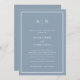 These elegant, modern wedding rehearsal dinner invitations feature a simple dusty blue and white minimalist text design, with a classic frame at the border. Add your initials or monogram to make them completely your own.