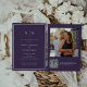 These elegant, modern engagement party invitations feature a colourful dark purple and white minimalist text design, with a classic frame at the border. Add your initials or monogram to make them completely your own. The back of the invitation features your favourite personal photo, plus a scannable QR code.