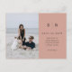 These elegant, modern wedding save the date postcards feature a simple terracotta and black text design that exudes minimalist style, with your favourite personal photo. Add your initials or monogram to make them completely your own.
