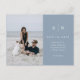 These elegant, modern wedding save the date postcards feature a simple dusty blue and white text design that exudes minimalist style, with your favourite personal photo. Add your initials or monogram to make them completely your own.