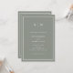 These elegant, modern all in one wedding invitations feature a simple sage green and white minimalist text design, with a classic frame at the border. Add your initials or monogram to make them completely your own. The back of the invitations feature room for your wedding details (reception info, hotel accommodations, etc.) and rsvp (including a scannable QR code so guests can respond online via your wedding website.)