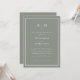 These elegant, modern wedding rehearsal dinner invitations feature a simple sage green and white minimalist text design, with a classic frame at the border. Add your initials or monogram to make them completely your own.