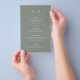 These elegant, modern wedding menu cards or rehearsal dinner menu cards feature a simple sage green and white text design that exudes minimalist style. Add your initials or monogram to make them completely your own.