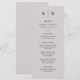 These elegant, modern light grey wedding menu cards or rehearsal dinner menu cards feature a simple black text design that exudes minimalist style. Add your initials or monogram to make them completely your own.