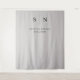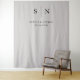 This elegant, modern wedding backdrop feature a simple black text design, with your initials or monogram, on a light grey background.