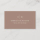 These elegant, modern business cards feature a simple neutral taupe and white text design with your initials or monogram that exudes minimalist style. The back of the card also has a scannable QR code along with a simple, professional layout and all of your contact information.