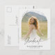 Announce your big moment with this modern elegant simple arch photo graduation party invitation postcard, featuring a joyful portrait framed in a clean minimalist black and white style. Perfect for high school graduation invitations or a college university school class of celebration, it brings a soft and timeless feel to your event. Personalize your photo, name, and details to create a meaningful photo graduation invitation postcard guests will love. Share your milestone with style and ease, personalize yours today.