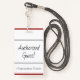 This simple badge design features the message "Authorised Guest!", and a customisable company name or other custom message. A badge like this could be used to identify that somebody at a workplace or business is an authorised guest/visitor. [~Z0000307]