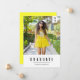 This modern graduation party invitation design features a clean minimal style with bold black text and a bright coloured backing.