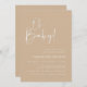 This elegant baby shower invitation features a minimal and neutral beige design with white modern calligraphy. It will make the perfect invitation for your baby's minimalist baby shower. Use the template fields to add your information and customize this invite. Contact the designer if you need assistance with adding your information.
