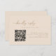 A modern and elegant beige/tan wedding RSVP card, designed with script lettering, and a QR code for your guests to scan and RSVP. Personalise with your own wording, wedding website, and response deadline.