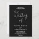 This elegant black and white wedding invitation is perfect for a modern wedding. the simple design features elegant white calligraphy on a black background.