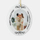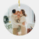 This design features a family photo and simple ornament frame with vibrant modern text "merry Christmas" and the name. At the back, there is another photo and the year. This unique ornament will add an elegant touch to your Xmas home decorations.