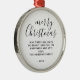 Minimal Black and White Merry Christmas Script Metal Ornament