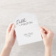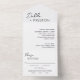 Modern black and white all in one wedding invitation featuring a simple and minimal design with the bride's name in an elegant script and the groom's name in a contemporary sans serif font. Below in the lower right corner are your event details in a minimalist layout.
