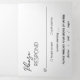 Modern black and white trifold wedding invitation featuring a simple and minimal design with the bride's name in an elegant script and the groom's name in a contemporary sans serif font. Below in the lower right corner are your event details in a minimalist layout. The middle panel has your favourite photo, the right panel is your RSVP card and the back has your additional details.