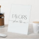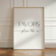 "Favours - please take one" sign with minimalist black and white script design for a modern Bridal Shower.