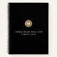 Modern Minimal Black Gold Classic Monogram Initial Name Title Custom Text Template Work Office School Notebook
