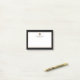 Monogrammed notepad with a minimalist design in a black and white colour palette with gold accents. Custom name and title, role or custom text presented on a simple white background, framed by a black border. Personalise using the fields provided or use the 'message' button to contact the designer for help.