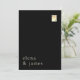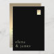 Simple, modern, minimalist trendy black wedding invitation with sophisticated faux gold monogram at the top right corner - at both sides of the card.