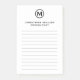A professional lined notepad with a minimalist monogrammed design in a black and white colour palette. Custom name and title, role or custom text presented on a simple white background. Personalise using the fields provided or use the 'message' button to contact the designer for help.