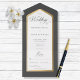 AVAILABLE WITH OR WITHOUT A QR CODE OR DINNER SELECTION OPTIONS. This design features a charcoal black background with a white text area framed in faux gold foil. A monogram with the bride and groom's first initial on the outside flap completes it. Created by Simply Farmhouse Press.