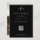 : This Save the Date card beautifully captures the essence of modern elegance. The front side features a crisp black background with gold leaf accents and a QR code for easy event detail access, while the reverse side delights with a warm, intimate couple's photo. The sophisticated font choice on the front pairs seamlessly with the heartfelt image on the back, offering a perfect prelude to your special day.