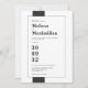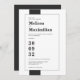 This minimal typographical style wedding invitation features beautiful bold serifs displaying your names and the date of your wedding, with details in a contrasting all caps clean font all within a modern geometrical frame. The back of the card is solid dark grey and may be personalised with the bride and groom's monograms in a white elegant font.