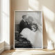 Minimal Black & White Wedding Photo & Family Name Wall Art Print. Customise this modern and simplistic wedding wall art print template with a favourite wedding photo, your new family name, and your est. date.
