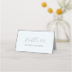 Pretty and delicate pastel quinceanera guest place card includes name and table number in silver grey colour text on a beautiful blue background. Classic look and elegant calligraphy script makes this place card perfect for many special events.