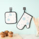 Minimal Blue Snowflakes Holiday Oven Mitt & Pot Holder Set
