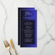 "Blue Wedding Menu Cards" are cards used at a wedding that are designed with a blue colour theme. Menu cards are typically placed at each table setting during a wedding reception to inform guests about the food and beverage options that will be served during the meal. Incorporating a specific colour theme, such as blue, into the design of these menu cards can help enhance the overall aesthetic and decor of the wedding reception. Blue can evoke feelings of calmness, elegance, and sophistication. Depending on the specific shade of blue you choose, it can also represent different emotions. Lighter shades of blue can convey a sense of serenity and tranquillity, while deeper shades can evoke a more formal and refined atmosphere. The menu cards should clearly list the courses and dishes that will be served during the meal. This information could be presented in a clear and organised manner, possibly with headings for different courses (appetizers, main course, desserts, etc.). Including brief descriptions of each dish can help guests with dietary restrictions or preferences. ince the menu cards will be placed on the tables along with other decor items, make sure that the blue colour of the menu cards complements the overall colour scheme and decorations used in the wedding reception venue.