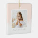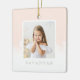Minimal Blush Pink Ombre & Snowflake Two Photo Ceramic Ornament